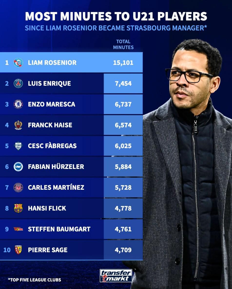 断崖领先,罗塞尼尔执教白堡同期使用U21球员时间五大联赛第1
