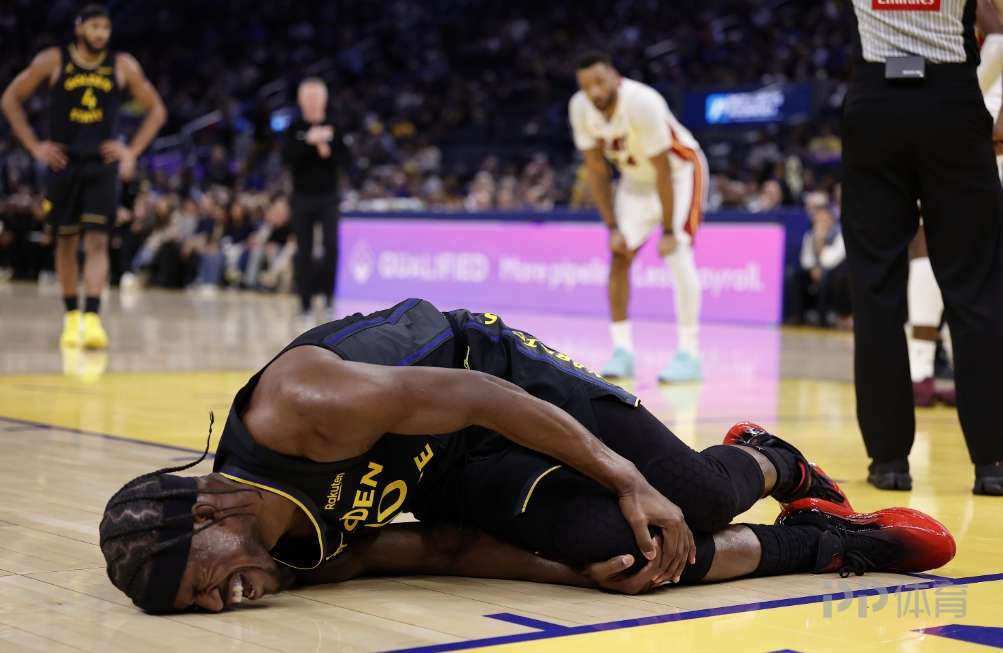 今日NBA常规赛,勇士在主场以135-112大胜热火。第三节还剩下7分多钟时,勇士进攻回合,吉米·巴特勒接应波杰姆斯基传球,在对抗中倒地不起,捂着右膝,表情痛苦,勇士立马喊出暂停,多人围上前查看巴特勒伤势。随后,巴特勒被队友希尔德和库明加架着回更衣室,其右脚不能受力,但离场时他还面带笑容。