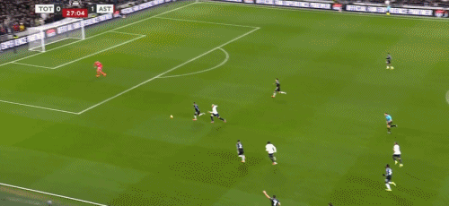 第45+2分钟,布恩迪亚脚后跟做球,罗杰斯破门,维拉2-0热刺
